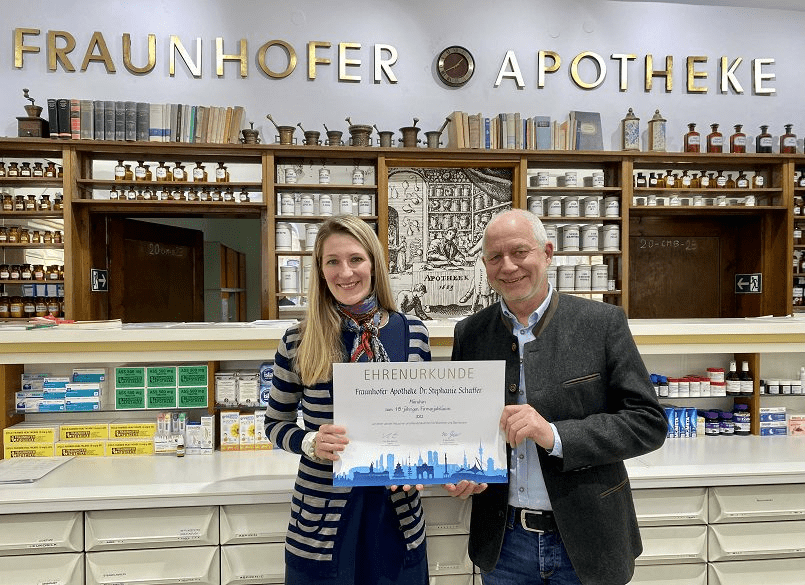 2022 wurde die Fraunhofer-Apotheke vom digitalen Stadtmagazin „Mit Vergnügen“ als eine der elf schönsten Apotheken Münchens ausgezeichnet. Im Frühjahr 2023 erhielt Dr. Stephanie Schäffer eine Ehrenurkunde von der IHK anlässlich des 115-jährigen Bestehens der Apotheke.