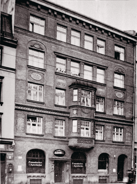 Während des Zweiten Weltkriegs wurde die Fraunhofer-Apotheke schwer beschädigt. Der vierstöckige Bau, dessen Fassade durch Bomben zerstört wurde, ist heute ein denkmalgeschütztes Gebäude. Damals überlebten nur zwei Stockwerke.