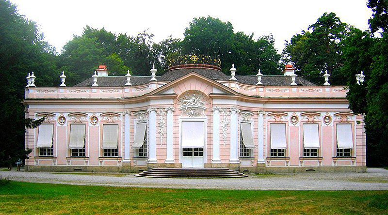 На самом деле, когда-то парк также был строго симметричным. Лишь между 1804 и 1823 годами Фридрих Людвиг фон Шкель получил заказ на его перепланировку. Из симметричных осей Шкель создал натуралистические озера, изогнутые тропы, разнообразные леса. Сочетание классического французского сада и парка в стиле барокко увлекательным образом объединяет два оригинальных дизайна.